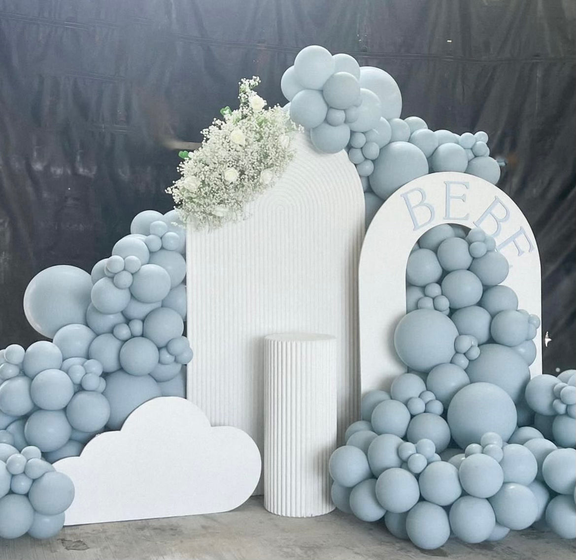 Transport your guests to a celestial realm with this curated ensemble that blends fluid architectural shapes with a dreamy, ethereal aesthetic. This multi-dimensional installation is the pinnacle of boutique event styling. Moving away from flat, singular backgrounds, this four-piece collection provides a rhythmic layering of textures and heights that lends a sophisticated, gallery-quality depth to your event’s visual narrative. Whether you are hosting an enchanting “Cloud Nine” baby shower, a modern bridal brunch, or a high-concept first birthday, this set anchors your venue with a clean, studio-standard finish.