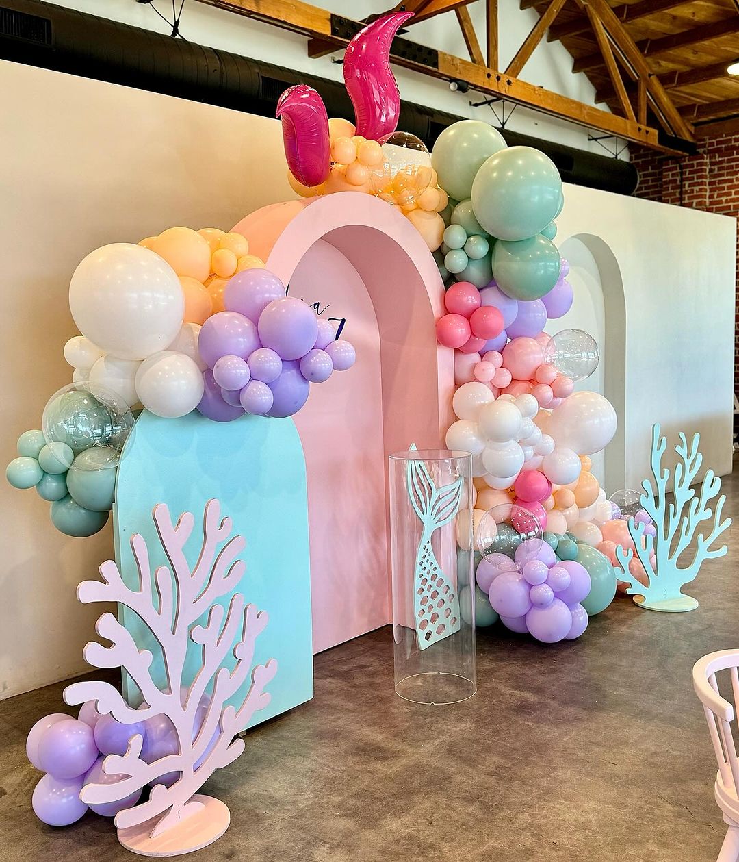 Defining your celebration with a sense of multi-dimensional architectural depth, this curated Mermaid Set creates a striking interplay between whimsical aquatic shapes and immersive, layered silhouettes. The design focuses on a rhythmic arrangement of sea-inspired backdrops and textural elements, providing a contemporary foundation that anchors “Under the Sea” or “Magical Mermaid” celebrations with a high-fashion, boutique finish.