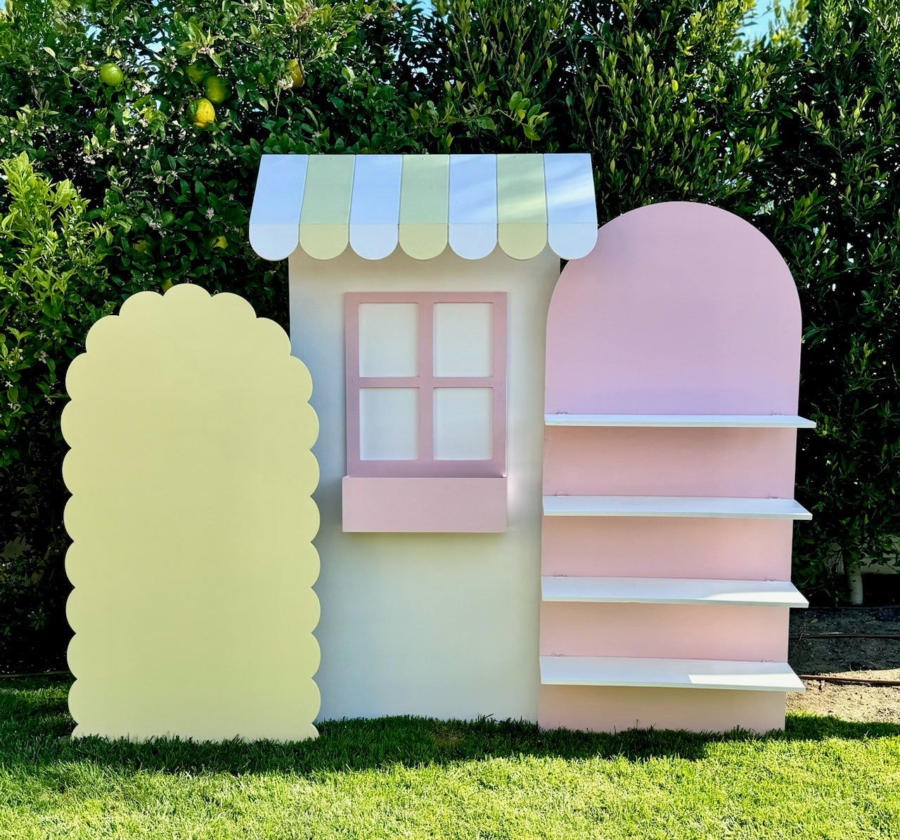 European Boutique Silhouette: Features a signature pitched-roof structure and integrated shelving that evokes the whimsical atmosphere of a Parisian flower stall.