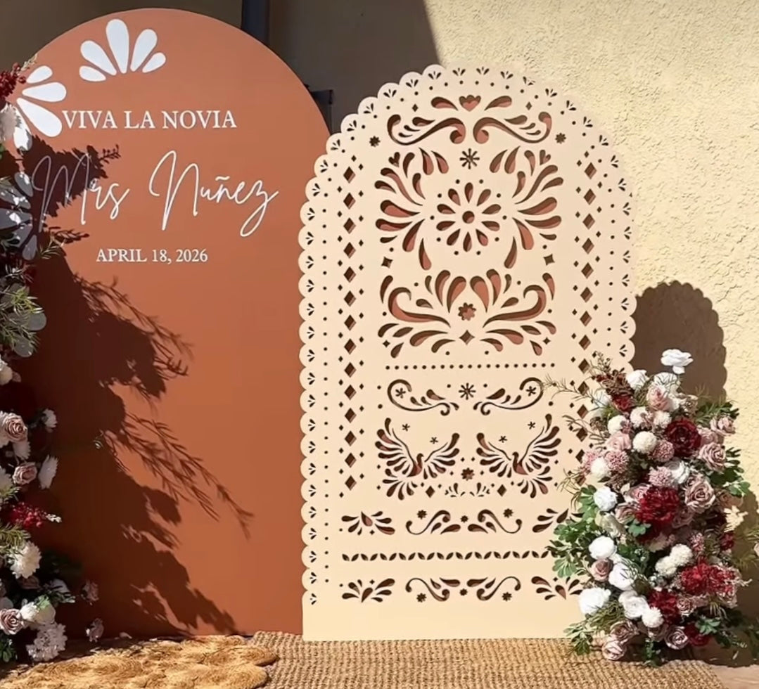 Defining your celebration with a sense of multi-dimensional architectural depth, our Papel Picado Panel creates a striking interplay between traditional cultural motifs and vibrant structural layers. The design focuses on intricate laser-cut patterns and balanced proportions, providing a rhythmic and contemporary foundation that anchors Mexican-themed festivities, birthdays, or boutique cultural events with a high-fashion, boutique finish.