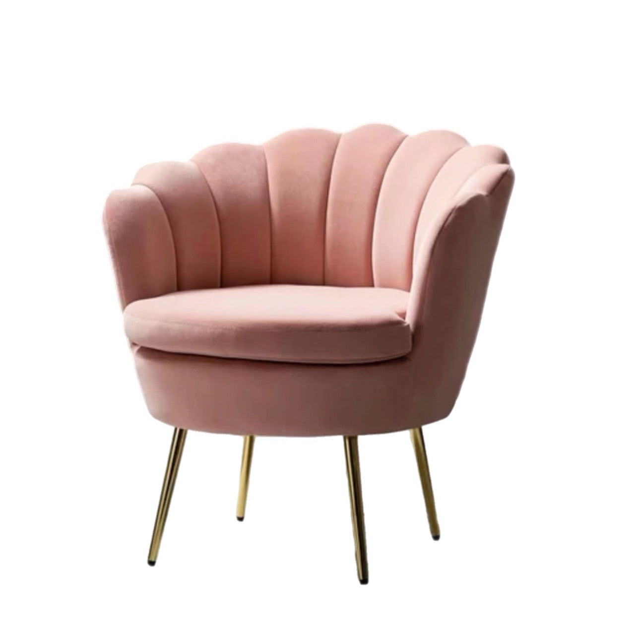 Primary Elements: One Pink Velvet Barrel Adult Chair with a supportive, integrated backrest.